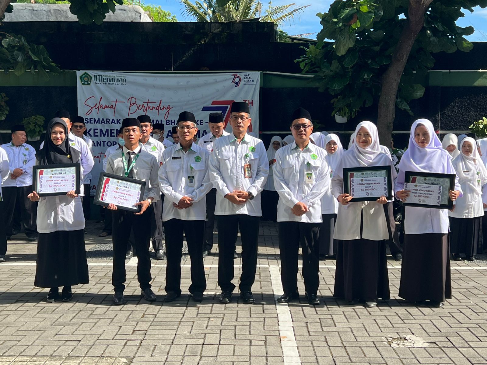 Sleman (MTsN 8 Sleman) β MTsN 8 Sleman mencatat prestasi membanggakan dengan meraih Juara I dalam Lomba Video Kreasi Hari Amal Bhakti (HAB) Ke-79 Kementerian Agama Republik Indonesia yang diselenggarakan oleh Kantor Kementerian Agama Kabupaten Sleman. Penghargaan ini diberikan langsung oleh Kepala Kantor Kemenag Sleman, Sidik Pramono, S.Ag., M.Si., dalam rangkaian Upacara Peringatan HAB Ke-79 yang digelar di Halaman Kantor Kemenag Sleman pada Jumat (03/01/2025).