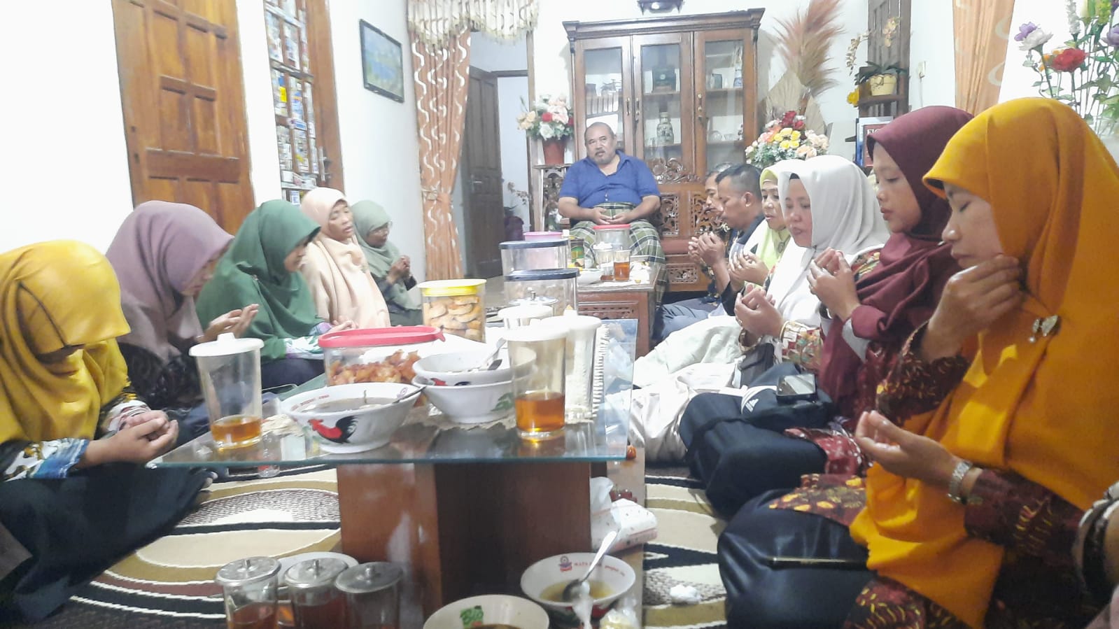 Suasana menjadi semakin syahdu dan penuh khidmat ketika Bapak Muhammad Nurhadi didaulat untuk memimpin sesi doa bersama. Dengan menundukkan kepala, seluruh rombongan yang hadir larut dalam lantunan doa-doa kesembuhan. Bapak Muhammad Nurhadi memohonkan keberkahan dan pemulihan kesehatan bagi suami Ibu Sri Handayani agar segera diangkat penyakitnya sehingga dapat kembali berkumpul bersama keluarga dalam kondisi sehat walafiat. Momentum spiritual ini menjadi puncak penguat batin bagi semua yang hadir di ruangan tersebut.