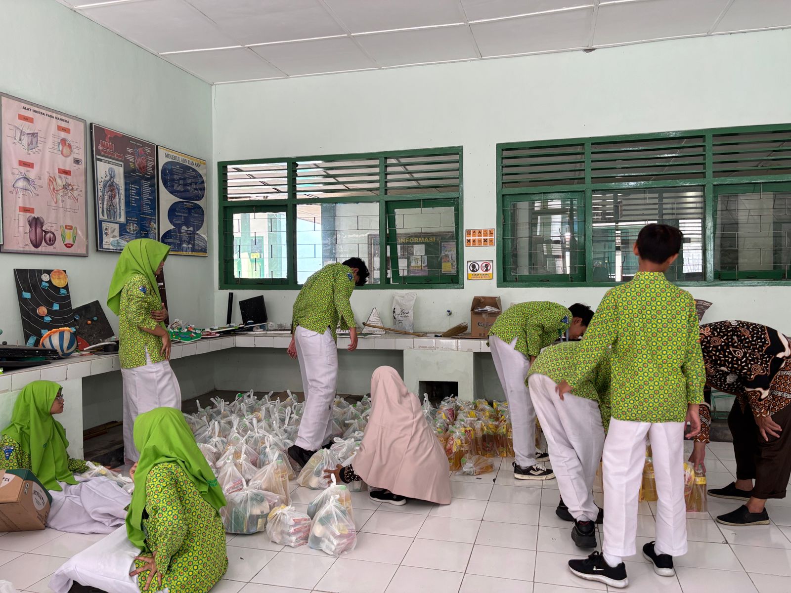 Persiapan BAKSOS dilaksanakan pada Rabu (04/03/2026) dengan kegiatan pengemasan (packing) paket sembako yang dilakukan secara gotong royong di Laboratorium IPA. Setiap paket berisi 5 bungkus mie instan, 1 liter minyak goreng, dan 1 kilogram gula pasir. Seluruh paket tersebut merupakan hasil donasi dan sedekah dari siswa kelas VII, VIII, dan IX MTsN 8 Sleman. Partisipasi aktif seluruh siswa ini menjadi bukti nyata kepedulian dan solidaritas sosial yang tumbuh di kalangan peserta didik.
