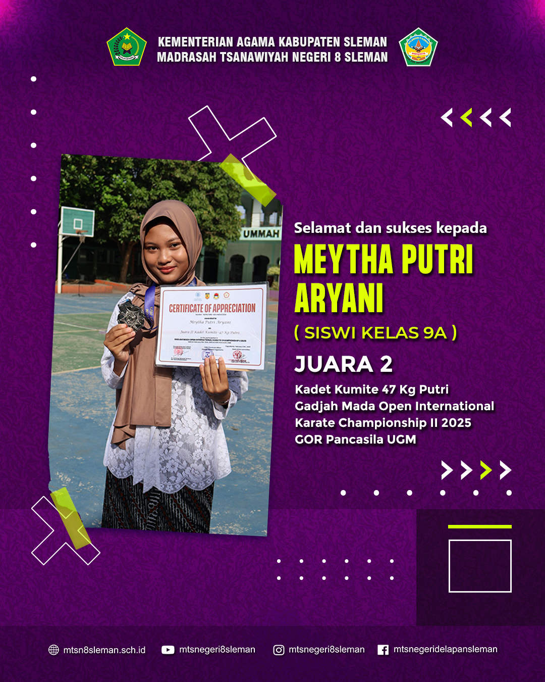 Juara 2 Kadet Kumite 47 Kg Putri Gadjah Mada Open International Karate Championship II 2025 GOR Pancasila UGM